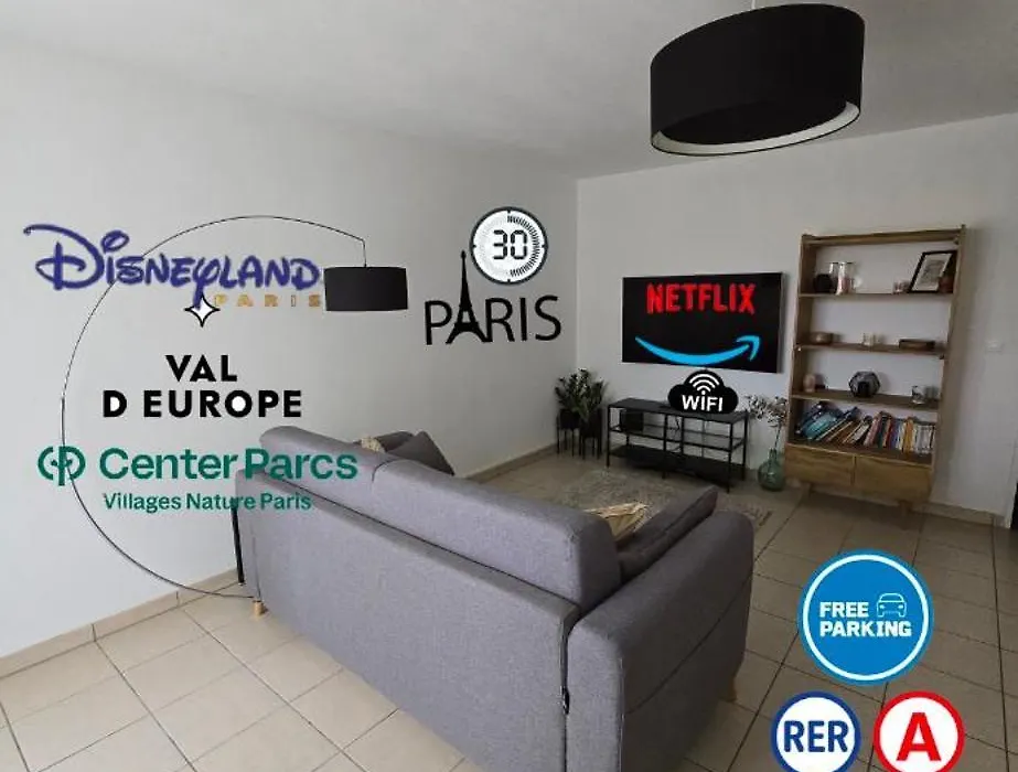 Özel yüzme havuzuna sahip olan Super Appartement Familial Disneyland Paris 5Pers dairesi, Casino'dan 1 kilometre uzaklıktadır. Disneyland Park 15 dakikalık sürüş uzaklığında, Paris Orly havaalanı ise 40 km uzaklıktadır.